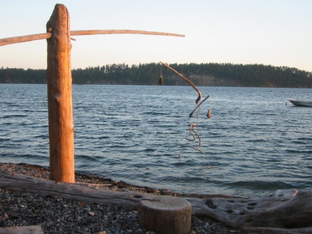 Inspired, in part, by a driftwood mobile I saw last summer, I thought it would be interesting to design a mobile based on the Fibonacci numbers. The Fibonacci Sequence, as you may know, is a list of numbers that begins with two 1’s, and continues on with each succeeding number equal to the sum of the previous two. Thus, the Fibonacci Sequence begins: 1, 1, 2, 3, 5, 8, 13, 21, 34, 55, 89, … , and continues on indefinitely.